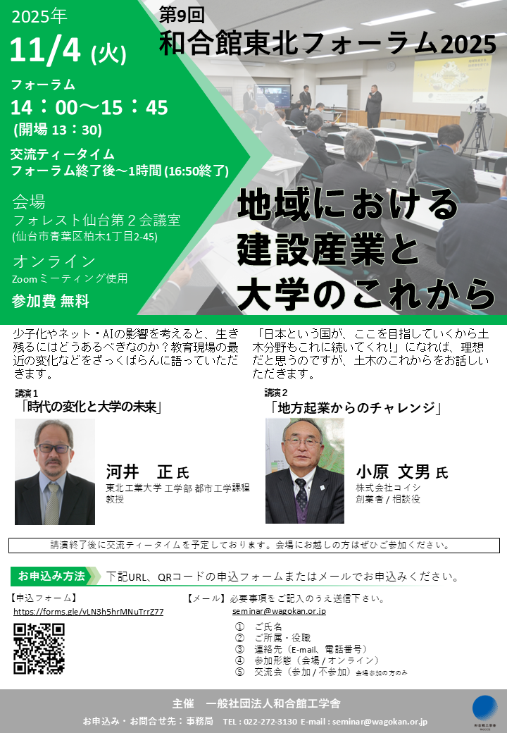 11/4開催「第9回 和合館東北フォーラム2025」開催のお知らせ(参加者募集中)